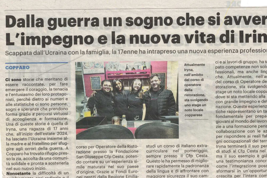 Il sogno di Iryna News Il sogno di Iryna Scappata dalla guerra con la famiglia, Iryna ha scelto di iscriversi al corso per Operatore…Amministrazione CFP Cesta14 Marzo 2025