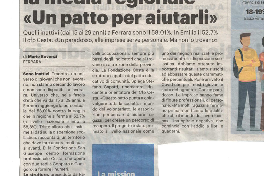 Lotta alla dispersione scolastica News Lotta alla dispersione scolastica Il Presidente della Fondazione San Giuseppe CFP Cesta, Dott. Giovanni Lolli presenta a Comacchio i…Amministrazione CFP Cesta3 Marzo 2022
