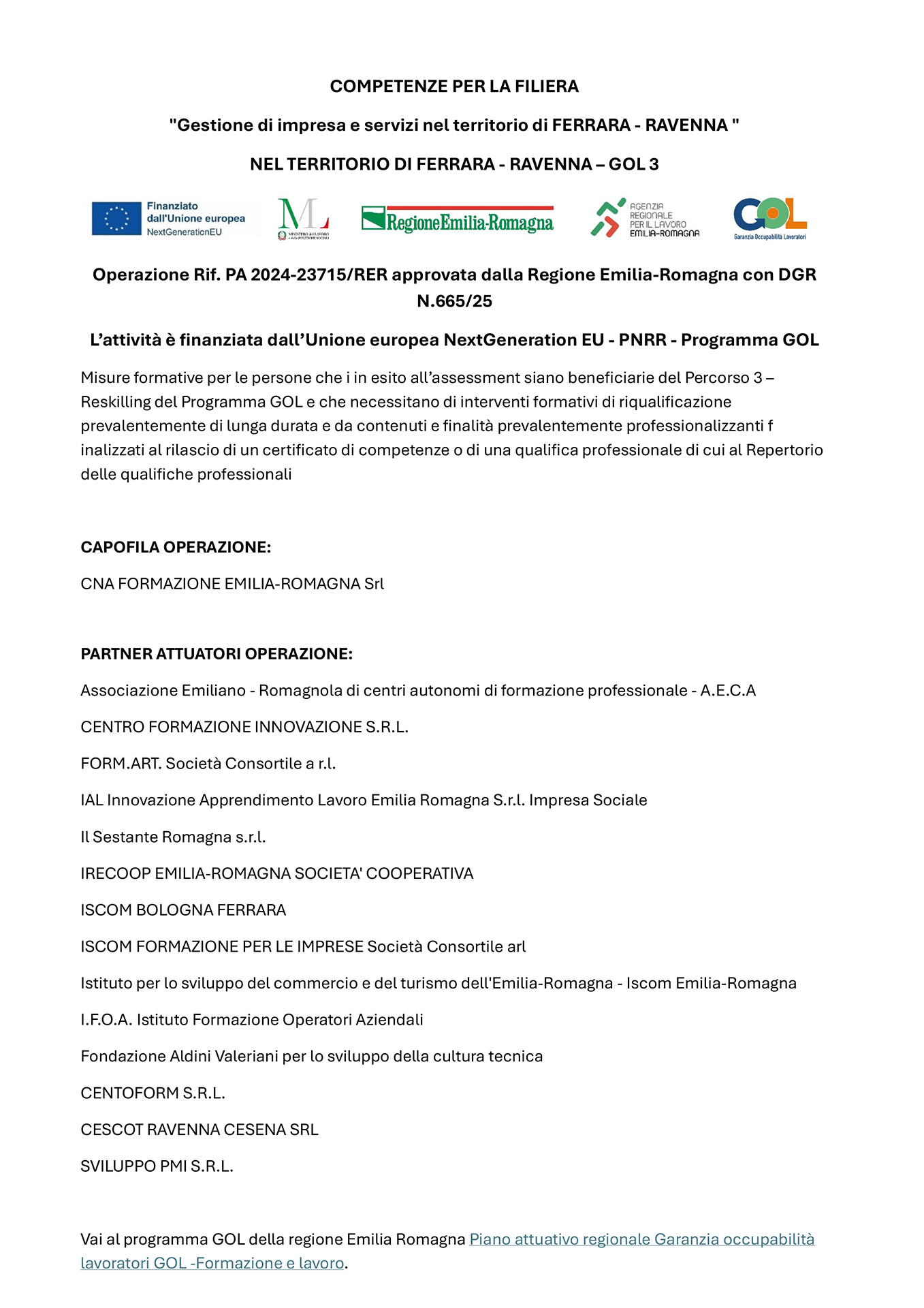 COMPETENZE PER LA FILIERA “Commercio, turismo, ristorazione e servizi alla persona” – GOL 3