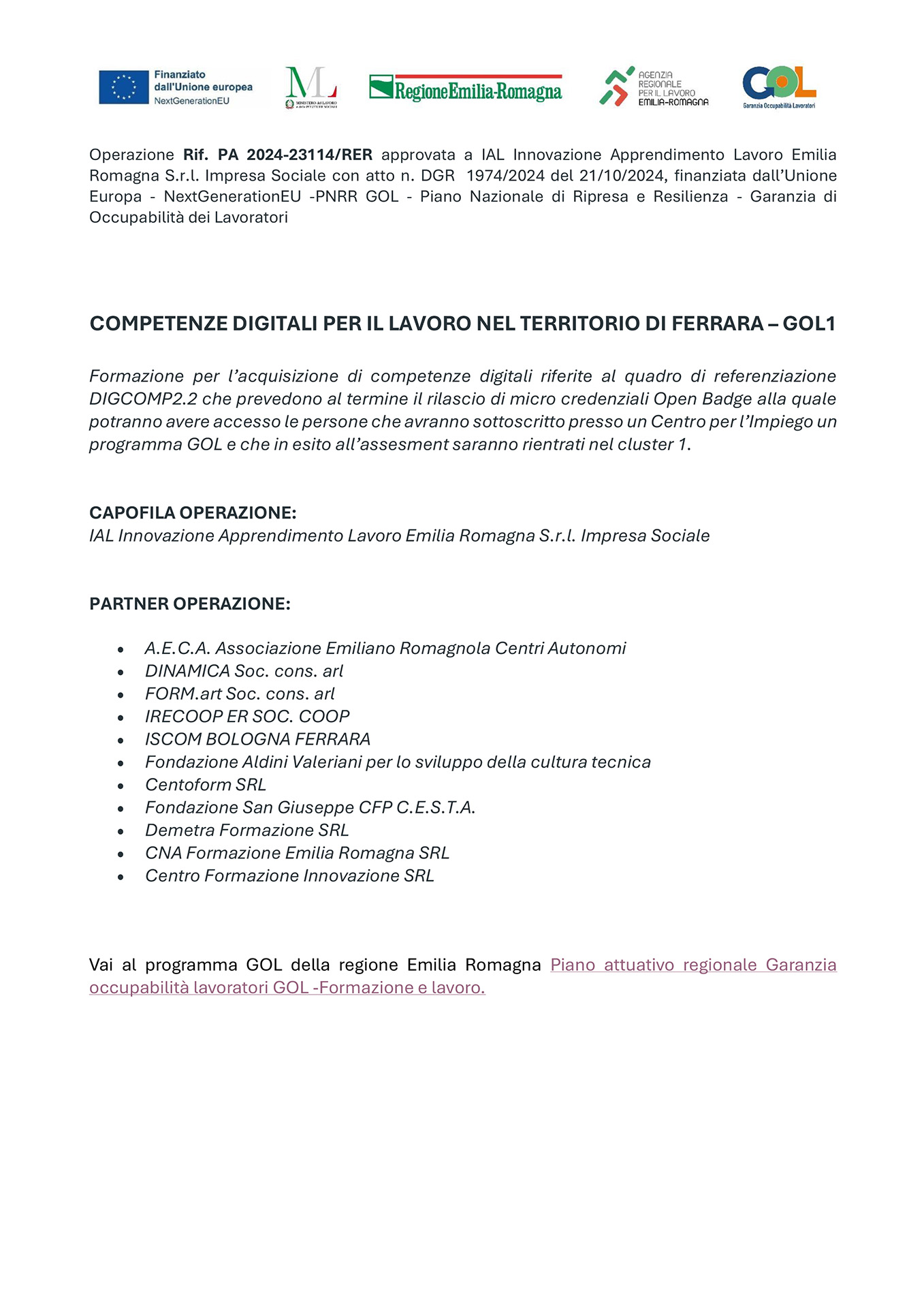 COMPETENZE DIGITALI PER IL LAVORO – GOL 1