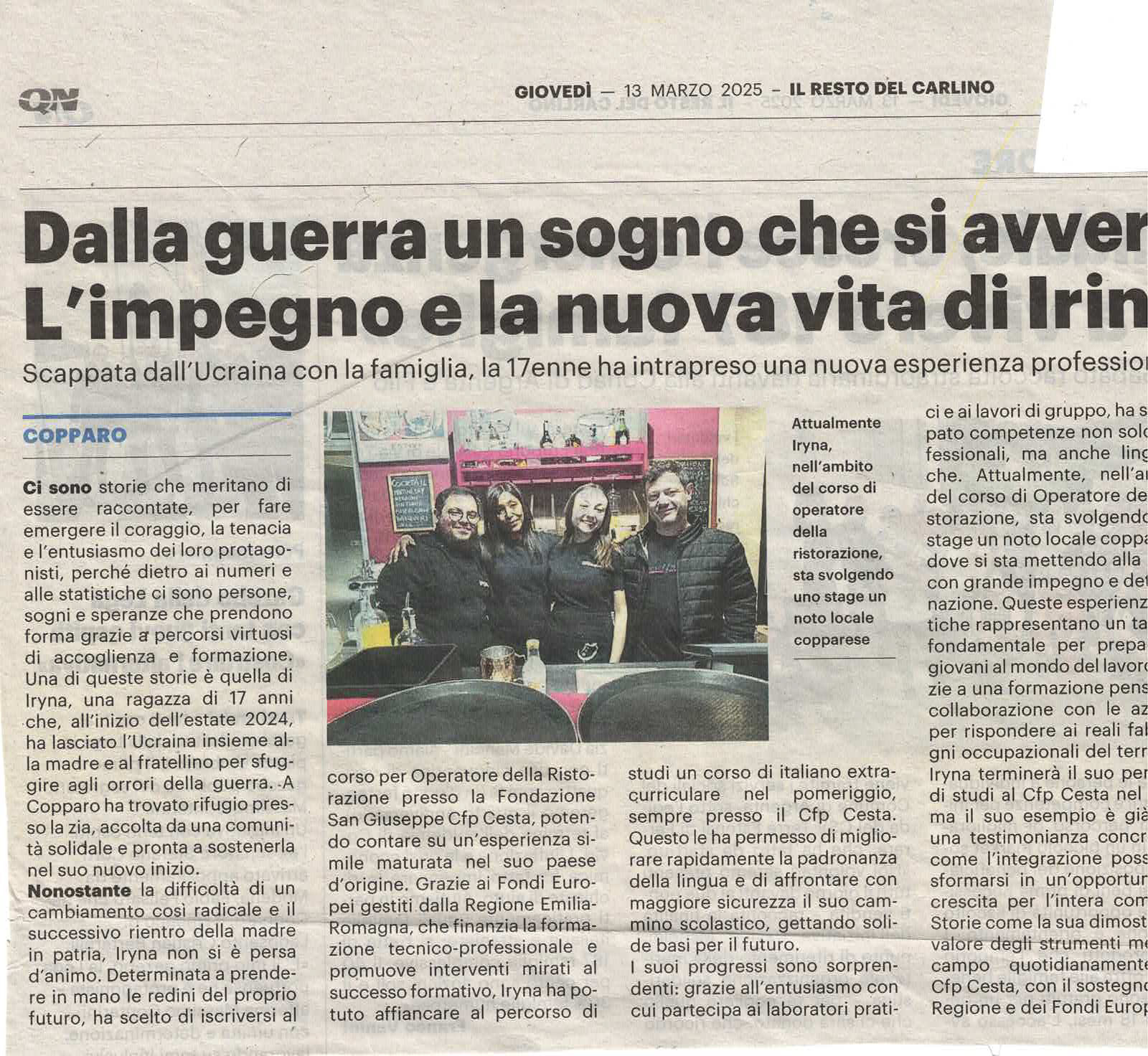 Scappata dalla guerra con la famiglia, Iryna ha scelto di iscriversi al corso per Operatore alla Rsitorazione presso la Fondazione San Michele Arcangelo CESTA